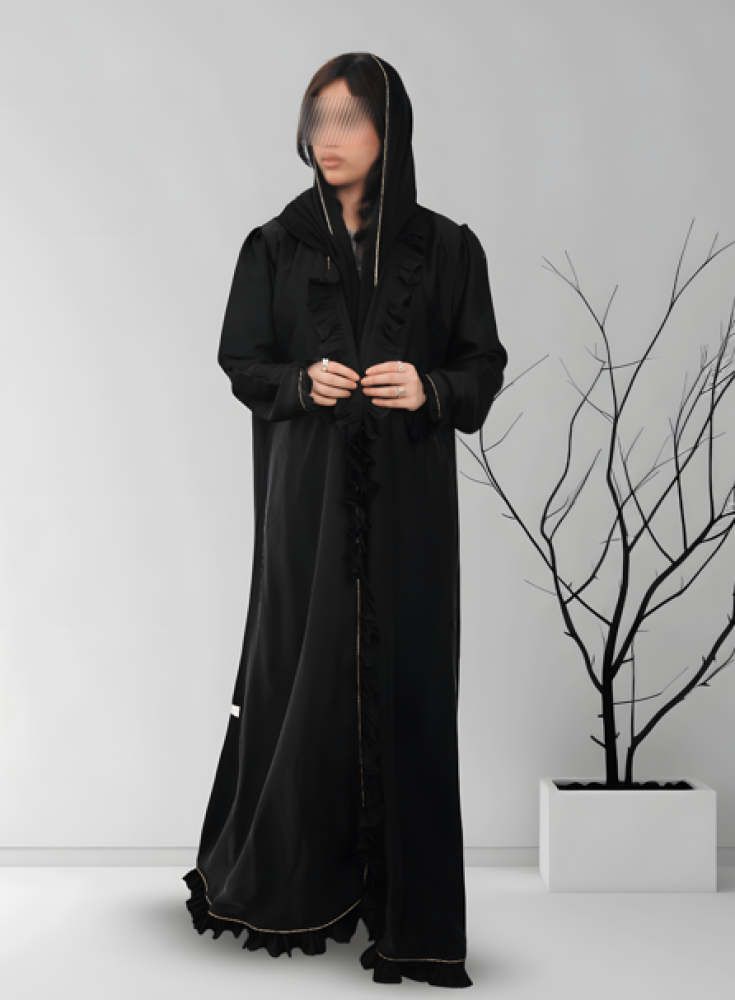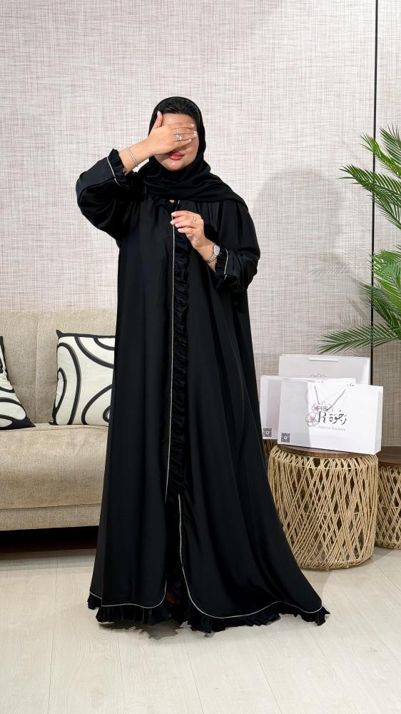 عباية بشت باللون الأسود ذات قماش من نوع كراب تيك توك كشكشة بالقيطان انيقة وصيفية